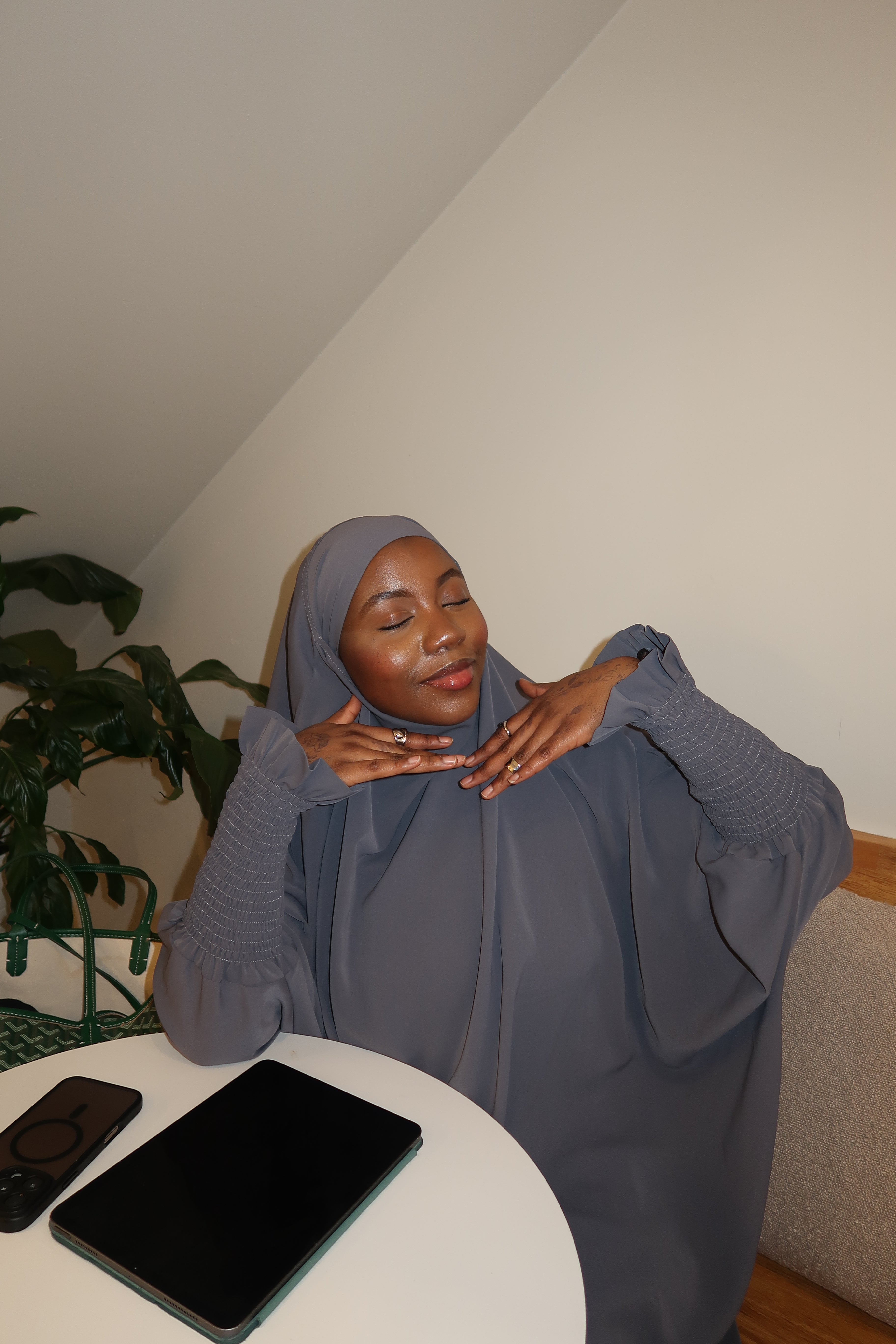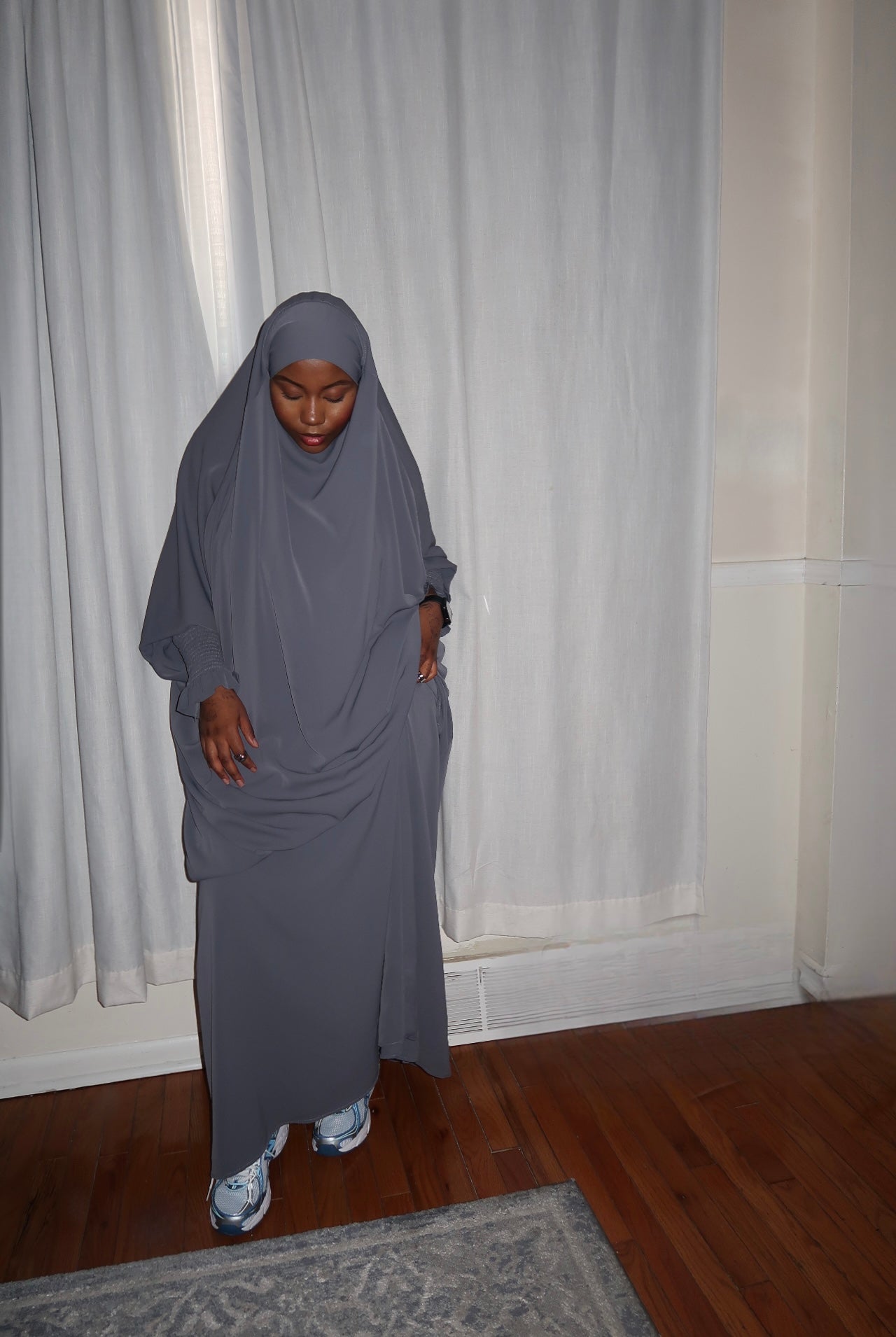 Introducing our Grey Jilbab 2-Piece Set from our ‘Princess Jilbabs’ Collection—the perfect balance of elegance and ease. Crafted from high quality heavy crepe fabric, this Jilbab drapes beautifully while offering durability that stands the test of time. The smocked, cuffed sleeves add a touch of sophistication, ensuring both comfort and style. This isn’t just a Jilbab—it’s a long-term investment in your wardrobe, designed for effortless wear and lasting quality.
